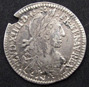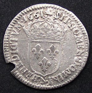 Francija-Kraljevina Luj XIII 1/12 sola iz leta 1661 - srebro