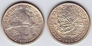 Cuba km23 10 Centavos (1952) 50th Year of Republic